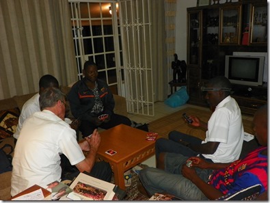 On Friday, we said good-bye for another three months to our dear mission friends and then met the Zawakcy’s who are coming up to help with the CES carnival on Saturday and Patriarch Courtney for our drive home. Bro. Courtney made lunches for us that we enjoyed along the road. What a delightful man he is. We are being so blessed to meet such wonderful South African people. We arrived home around 4:00 and the Lobamba boys arrived at 4:45 to receive their blessings. Again, they were there on time and stayed for 4 hours waiting for their turn and then for the others. I hurried and fixed dinner for us all and we played UNO all night. They loved it and we did too. At the beginning I told of one of our conversations of the night. There were many. As Zweli came out of his blessing, he told Dennis that he heard exactly what he needed to hear and Musa said that he had never felt that way before. They know it, they live it and they love it.