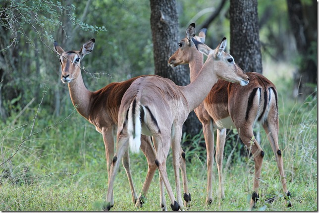 Thursday, Friday and Saturday were spent in South Africa enjoying some of God’s creations in Hluhluwe/Imfolozi game park. The animals were magnificent and the scenery was breath-taking. We saw warthogs, impala, giraffes, zebra, vultures, rhinos, water buffalo, elephants, kudu, hyena, baboons. wildebeests, owls, a phython and others that I cannot name. We stayed in a camp that allowed the animals to wander. We ate with the warthogs, impalas,and they said there was a hyena around but we didn’t see them at that time. After two days there we went to St. Lucia to the hippo park and saw of course, hippos and crocodiles. We had a great time and enjoying this with Koy and Cassie was the greatest!Here’s our journey through three days of some of God’s most magnificent creations.