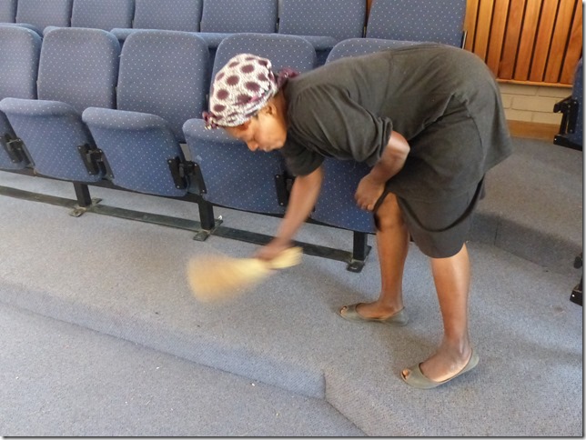 Members taking the time to clean to get ready for the sabbath day.